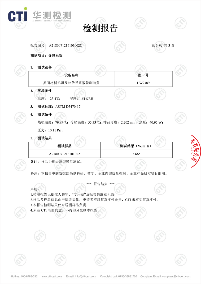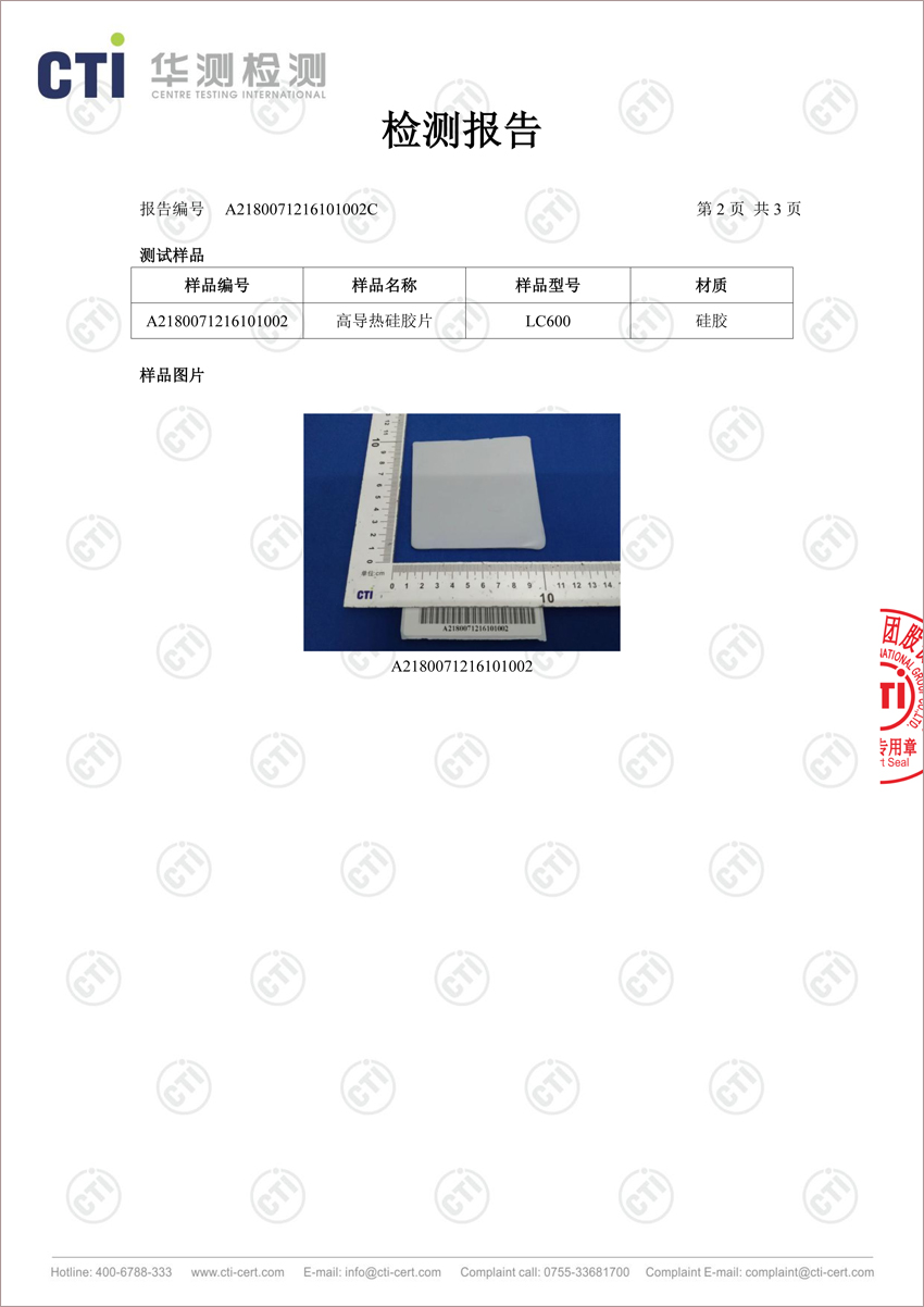 LC600導熱硅膠片實測認證 2019-04-25(6619)次瀏覽 我司專注導熱材料的研發生產,具備十年行業經驗,我司超高導熱硅膠片LC600導熱硅膠片均為實測參數,可提供第三方權威機構檢測報告 上一篇:LC500導熱硅膠片導熱實測報告 下一篇:導熱硅膠ROHS認證 返回列表